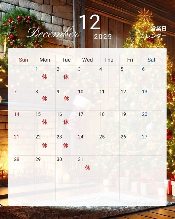 12月の店休日のお知らせです。 2026年1月は3日から通常営業致します。