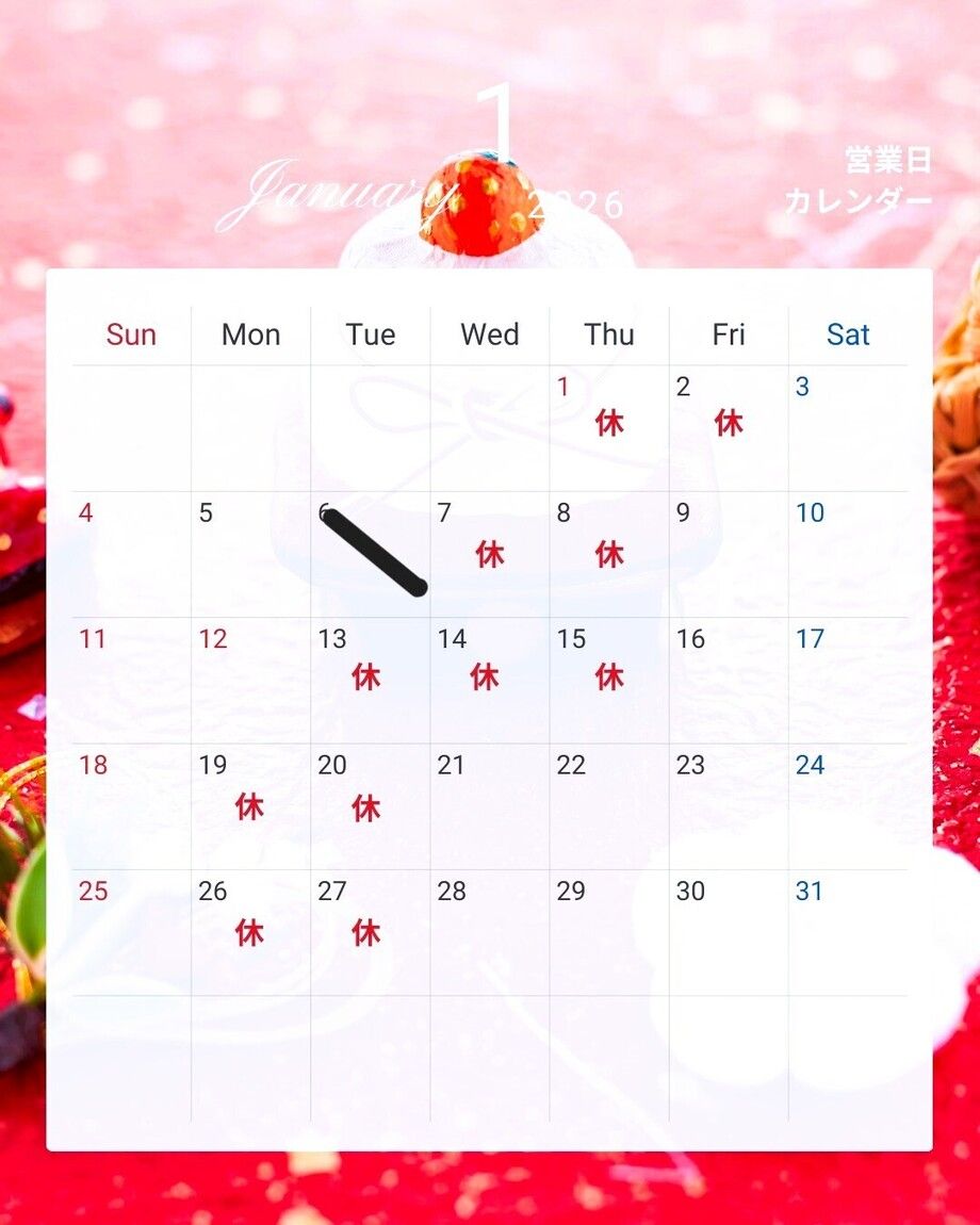 1月の店休日のお知らせ